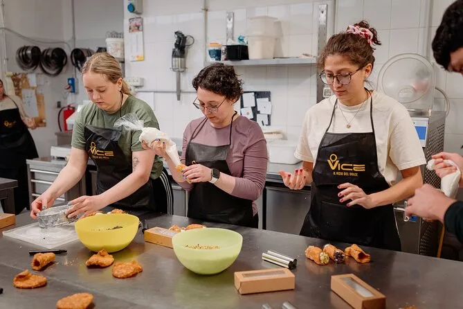 Seu dia inclui todos os ingredientes e equipamentos para preparar tiramisu, cannoli sicilianos e gelato fresco em um laboratório de confeitaria real em Roma; água mineral; um copo de Prosecco (ou suco para crianças); suas sobremesas embaladas para levar; receitas impressas; e orientação de chefs locais especialistas durante toda a aula.