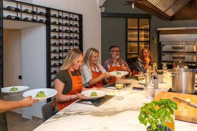 Seu dia inclui uma aula prática de culinária italiana com um chef local especialista, perto da Piazza Mattei em Roma, onde você fará massa fresca e tiramisu cremoso do zero em um grupo pequeno. Todos os ingredientes são fornecidos, além de vinho premium durante a refeição no final — e um guia que fala inglês para ajudar durante toda a atividade.