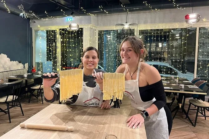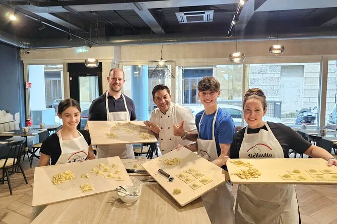Sua tarde inclui todos os ingredientes e utensílios, orientação prática de um chef profissional no centro de Roma, uso de avental e ferramentas durante a aula, além de uma refeição compartilhada onde você vai saborear seu fettuccine, ravioli e tiramisu feitos à mão junto com os outros participantes antes de voltar para explorar a cidade.