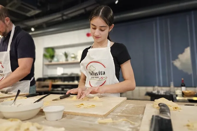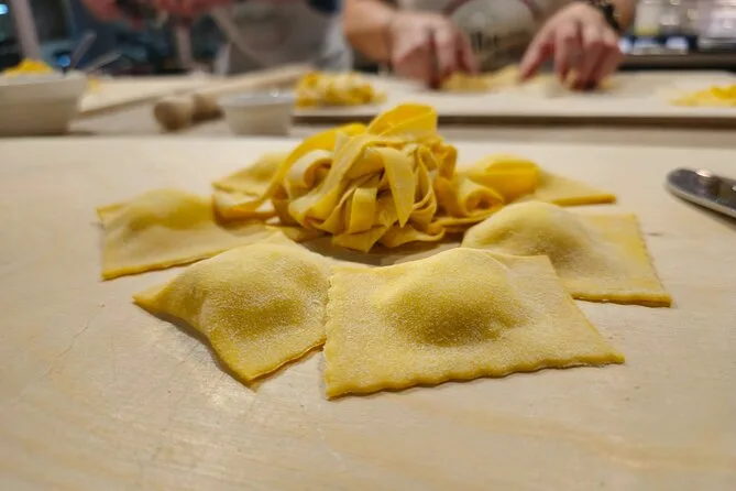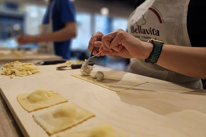 Não esperava gostar tanto de rechear ravioli. Você sente uma pressão gostosa entre os dedos ao fechar as bordas — meio bagunçado, mas muito satisfatório. Alguém perguntou a diferença entre massa romana e a do norte da Itália, e Marco começou a contar uma história sobre o tio dele, que era teimoso quanto a usar ovos ou água na massa. A aula parecia menos uma lição e mais um convite para ser parte de uma família italiana por uma tarde. Quando finalmente sentamos à mesa, passando pratos com nosso próprio fettuccine e ravioli, o barulho era daquele jeito bom — talheres tilintando, gente pedindo mais, alguém derrubando uma colher (acho que fui eu).