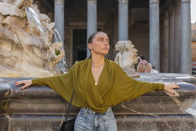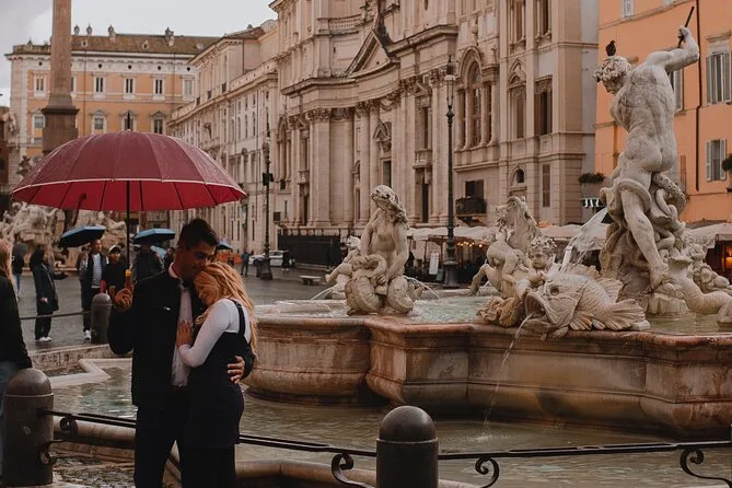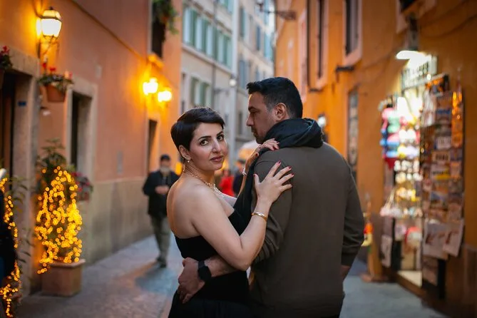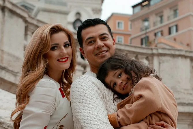 Inclui um ensaio fotográfico privado de uma hora com fotógrafo profissional usando equipamento Canon de ponta; pelo menos 70 fotos editadas em alta resolução entregues online em 7 a 10 dias úteis; pontos de encontro flexíveis pelo centro de Roma; opções de roteiros personalizados se combinados antes; além de acessibilidade para cadeirantes e carrinhos durante o passeio.