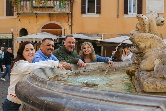 O roteiro padrão inclui Escadaria Espanhola, área do Tempio di Adriano e Pantheon; outros lugares como Coliseu ou Trastevere podem ser solicitados com antecedência.