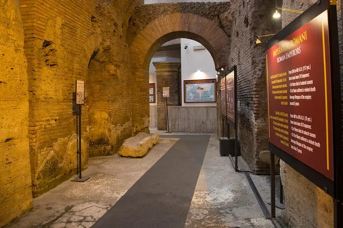 Entramos por uma portinha discreta na lateral da Piazza Navona — confesso que já tinha passado por ali várias vezes sem notar. O ar mudou assim que começamos a descer os degraus; ficou mais fresco, com um cheiro de terra e aquele silêncio típico de lugares subterrâneos. Com nossos ingressos, entramos direto, sem complicação, e na bilheteria nos entregaram uns pequenos áudios guias — o meu vivia caindo do ouvido, mas até que gostei de ficar ajeitando. Tinha famílias com crianças também, e ouvi várias línguas diferentes pelo ambiente.