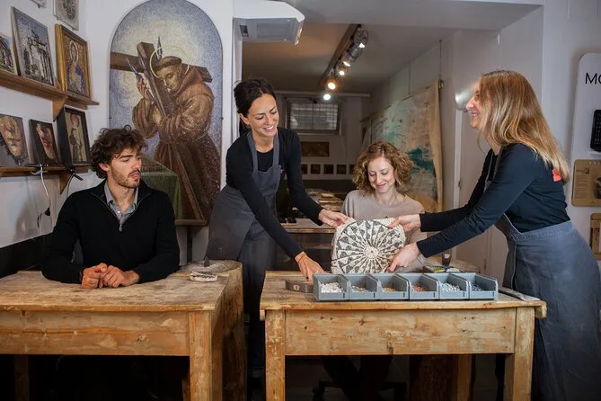 Confesso que fiquei surpreso com o silêncio do estúdio quando chegamos — só o som suave das peças de mármore se tocando e um cheirinho de café vindo lá do fundo. Nossa guia, Giulia, nos chamou com as mãos ainda brancas do pó do grupo anterior. Ela começou a contar sobre os mosaicos romanos antigos, apontando para umas fotos antigas na parede. Tentei imaginar aqueles desenhos sob os pés em alguma villa, séculos atrás. É engraçado como dá para quase ouvir o passado, se a gente prestar atenção.