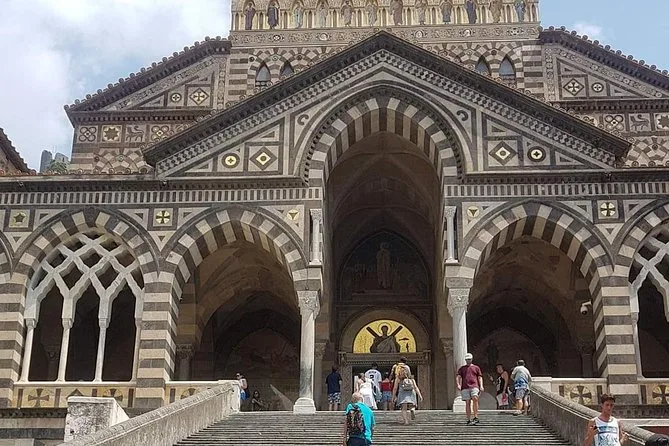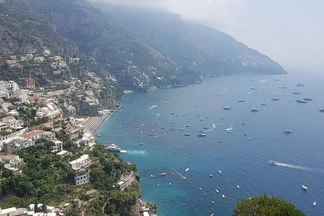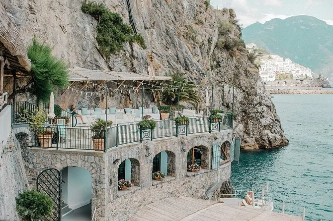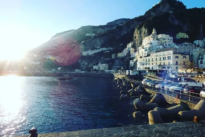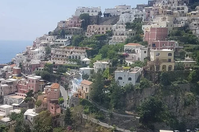 Você para em Positano para o almoço e tempo livre; dependendo da época ou trânsito, pode visitar também Amalfi ou outra cidade costeira como Maiori ou Vietri sul Mare.
