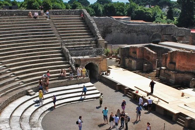 Seu dia inclui transfer em minivan confortável com ar-condicionado, saindo direto do seu hotel em Roma, entrada sem fila em Pompeia com um arqueólogo local guiando você pelas ruínas por duas horas, além de uma assistente de turismo para ajudar durante todo o passeio. Você terá tempo livre para almoçar à beira da praia em Positano, provar limoncello ou doces em Amalfi — ou outra cidade linda — antes de voltar para casa ao cair da noite.