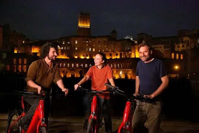 Deslize pelo brilho noturno de Roma de e-bike, parando em pontos como Coliseu e Fontana di Trevi enquanto seu guia conta histórias que só os locais conhecem. Ria durante o jantar em uma verdadeira trattoria, se escolher essa opção, e aproveite bastante tempo para fotos e surpresas pelas ruas sinuosas.