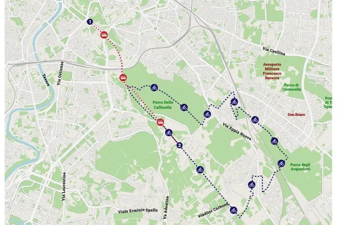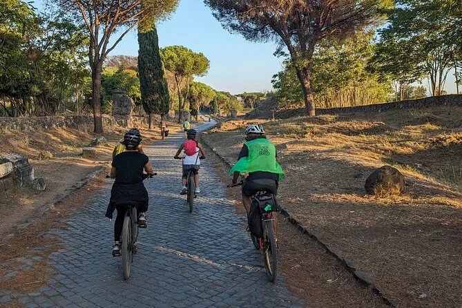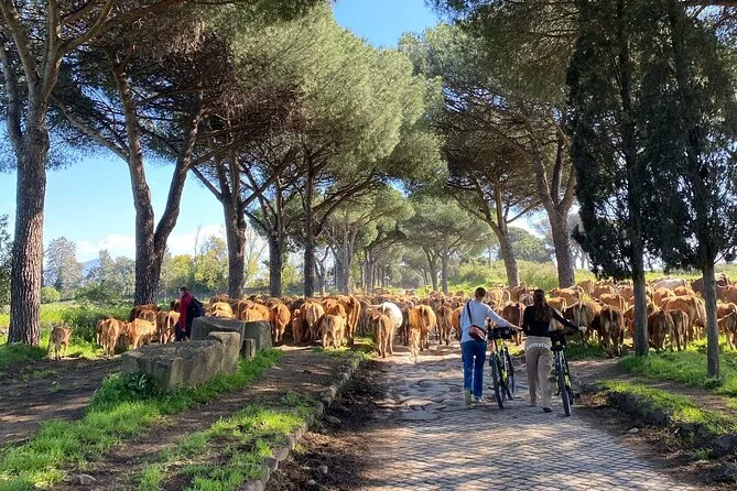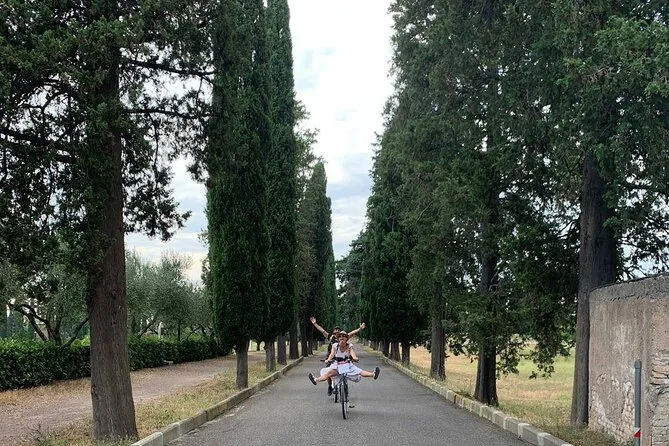 O passeio inclui pedaladas pela Via Appia Antica e transfers; a duração total varia, mas espere algumas horas com paradas.