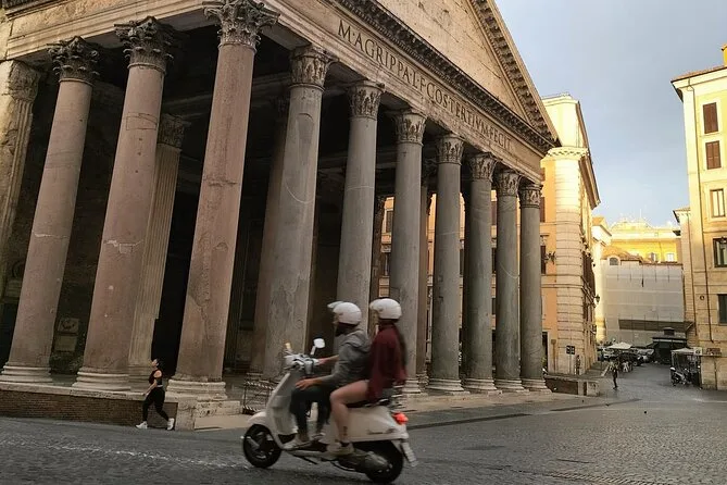 Seu meio-dia inclui pickup e drop-off no hotel em Roma, passeio como passageiro atrás do guia-motorista em uma Vespa higienizada com capacete. Durante o trajeto, comentários ao vivo sobre cada parada — de ruínas antigas a praças movimentadas — e uma pausa para café ou gelato em Testaccio antes de voltar com segurança ao ponto de partida.