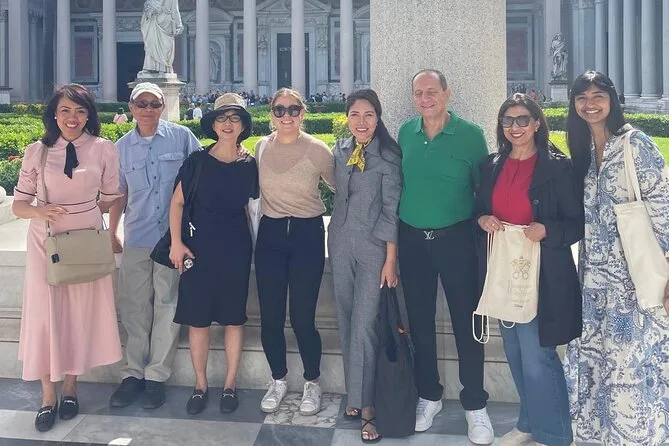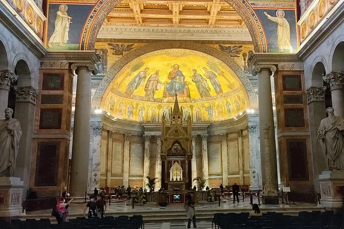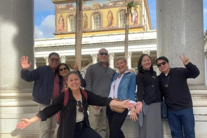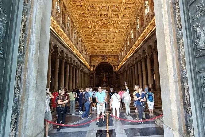 Seu dia inclui visitas guiadas a três das principais basílicas do Vaticano — Santa Maria Maggiore, São Paulo Fora dos Muros e São João de Latrão — com transfers confortáveis entre os locais para evitar longas caminhadas por Roma. Você fará parte de um grupo pequeno liderado por um guia local experiente, que conta histórias sobre relíquias cristãs e obras de arte. Tempo livre em cada parada para fotos ou descanso antes de seguir juntos.