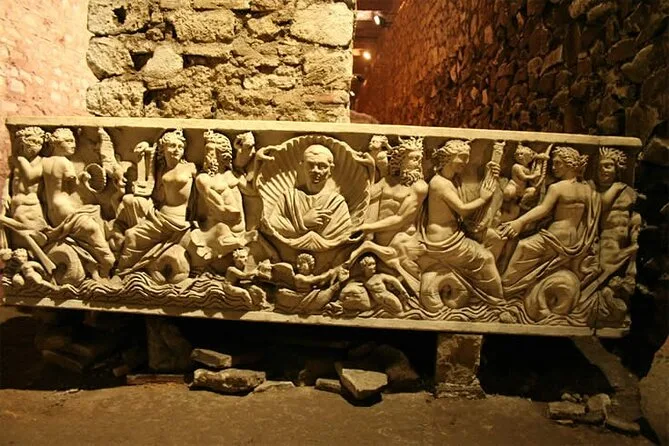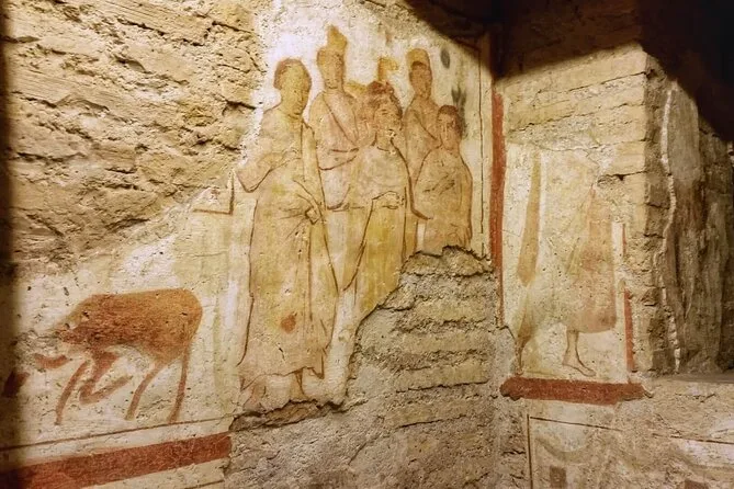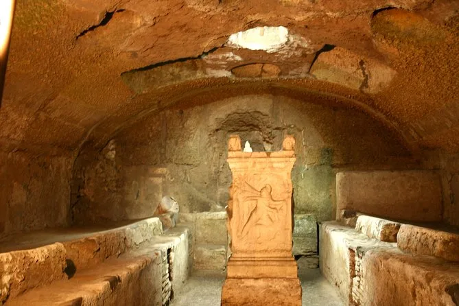 Seu dia inclui todas as taxas de entrada e impostos, traslados de minivan entre cada local subterrâneo, fones de ouvido para grupos maiores que seis pessoas, e um guia especialista em inglês que traz à vida a história escondida de Roma enquanto você vai das basílicas às antigas catacumbas antes de voltar à superfície.