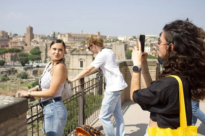 Seu dia inclui ingressos com entrada rápida para o piso da arena do Coliseu (se selecionado), Colina Palatina e Fórum Romano; um guia historiador licenciado e experiente (com fones para você ouvir tudo claramente); além de um grupo pequeno e confortável que permite fazer perguntas ou ficar mais tempo nos lugares que mais chamar sua atenção antes de voltar para a Roma moderna.