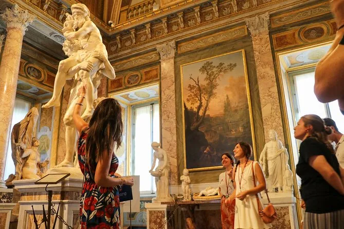 Seu dia inclui ingressos com entrada sem fila para a Galeria Borghese, tour guiado em grupo pequeno com um especialista (com fones disponíveis se precisar), além de todas as taxas de entrada para você aproveitar as salas cheias de arte sem esperar do lado de fora.