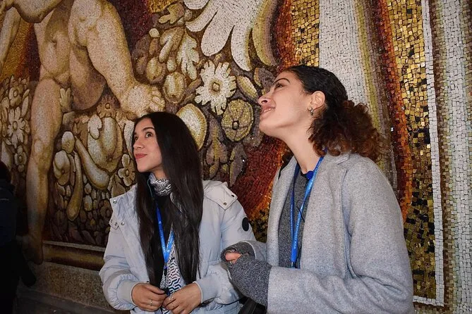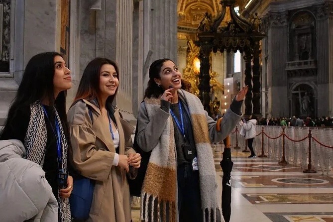 Dentro da Basílica de São Pedro, o silêncio era diferente do que eu esperava — não era total, mas havia uma calma que pairava sob os mosaicos e o mármore. Nosso tour guiado rápido não foi corrido, mas manteve o ritmo para que pudéssemos ver bastante coisa sem nos perder na multidão. O áudio guia ajudou muito (troquei para o francês só para testar), especialmente perto dos túmulos papais, onde você pode ficar à vontade para explorar depois. Tem algo mágico na luz do sol entrando pelas janelas altas que ficou na minha memória — talvez por saber a história que já passou por ali.