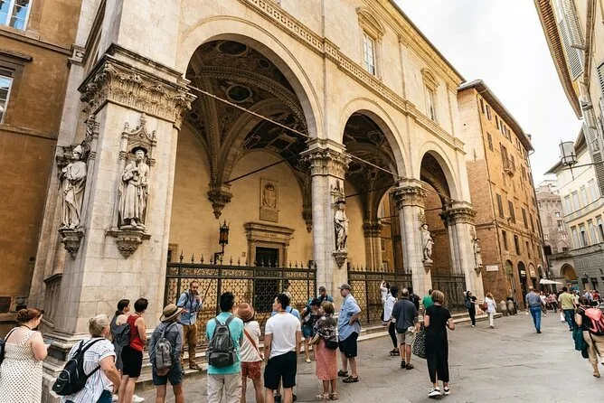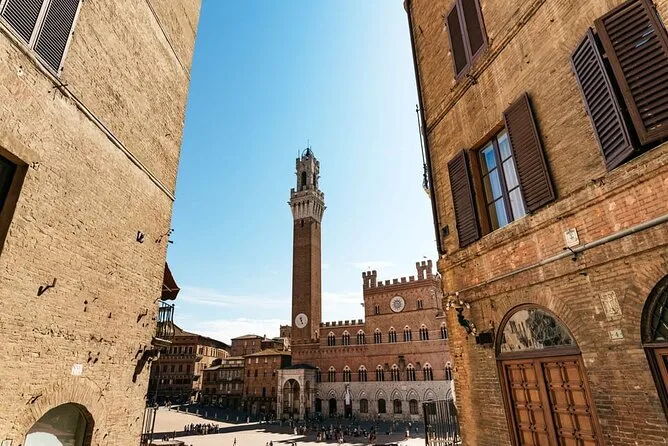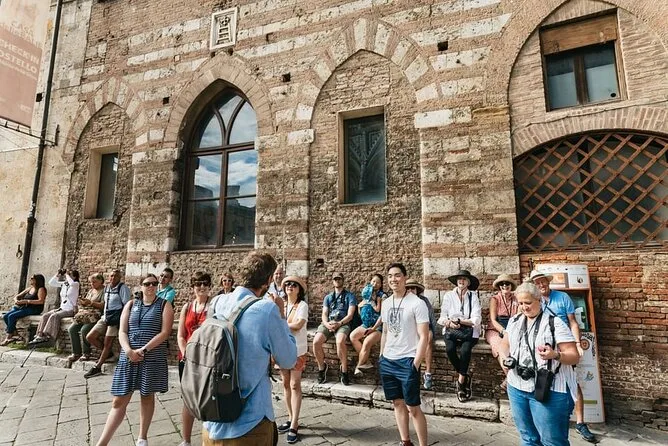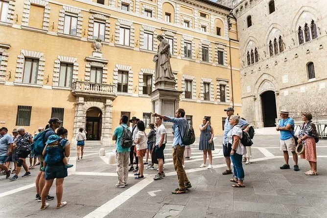 O dia inclui transporte de ida e volta saindo de Florença em minivan ou micro-ônibus confortável (com Wi-Fi), passeios guiados pelos principais pontos de Siena e tempo livre para explorar Siena e San Gimignano no seu ritmo. O almoço é numa vinícola perto de Monteriggioni — pratos sazonais harmonizados com vinhos locais antes do retorno à noite.