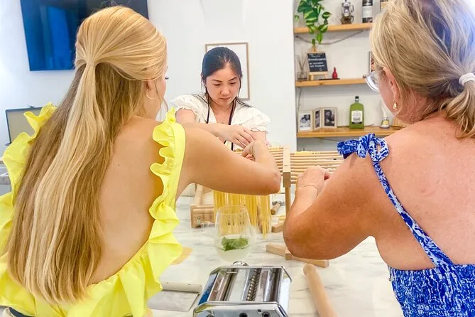 Confesso que fiquei nervoso em amassar a massa na frente de estranhos. A cozinha da Nonna Flora fica bem no centro histórico de Sorrento, e o cheiro de farinha e manjericão já te recebe antes mesmo de entrar. Nossa guia, Francesca, que cresceu ali perto, me ofereceu um limoncello spritz assim que cheguei — isso ajudou bastante. Aventais estavam espalhados por todo lado e uma playlist tocava baixinho enquanto a conversa rolava. Ainda lembro como a bancada de mármore estava fria sob as minhas mãos quando começamos a abrir o spaghetti.