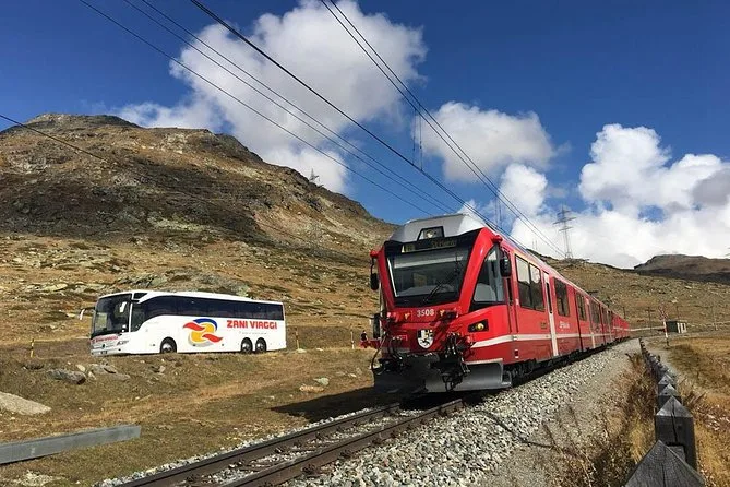 O passeio dura o dia inteiro, com transporte de ida e volta entre Milão e St. Moritz de ônibus e trem.