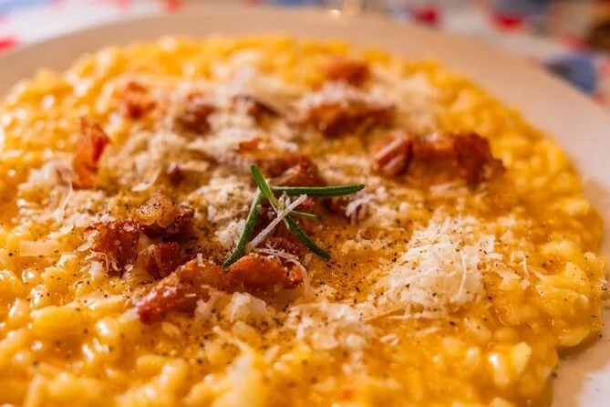 Seu dia inclui um tour privado guiado pelo mercado de Santa Margherita em Veneza para escolher ingredientes frescos com a Laura, sua guia local, antes de caminharem juntos até a casa dela para uma aula interativa de culinária italiana. Você vai saborear um aperitivo como Prosecco, preparar pratos como risoto ou massa e tiramisù de sobremesa, tudo servido com vinho ou café na cozinha aconchegante da Laura antes de voltar para explorar a cidade.