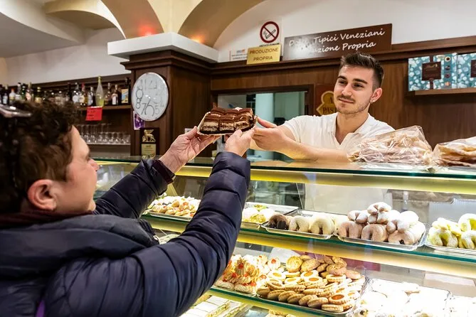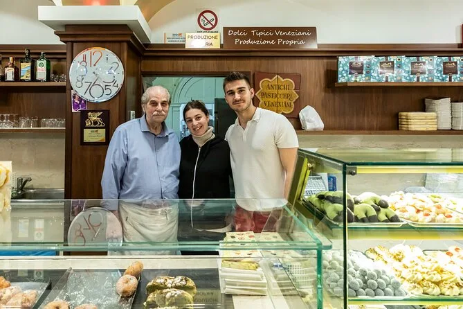 Explore o bairro de Cannaregio em Veneza com um guia local, provando tramezzini numa padaria histórica, cicchetti com prosecco col fondo em bacari aconchegantes e aprendendo a preparar um spritz veneziano. Desfrute de um prato principal numa trattoria familiar e escolha sua sobremesa — tiramisù, gelato ou frittella — enquanto absorve a vida à beira dos canais centenários.
