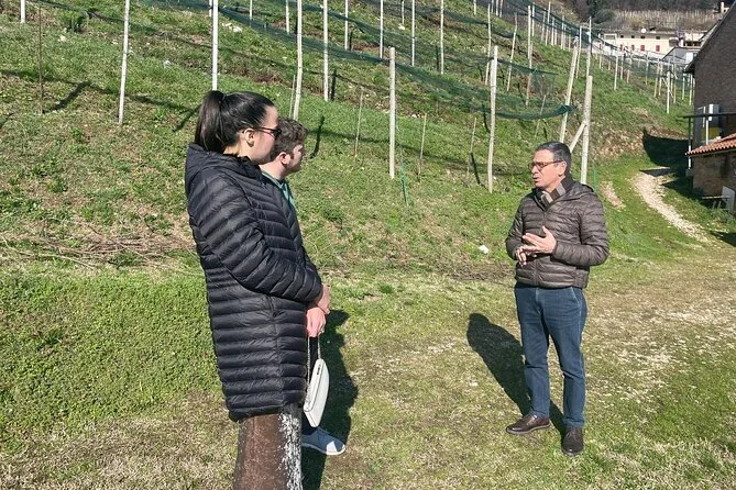 O tour é conduzido por um guia local chamado Riccardo, junto com os donos das vinícolas.
