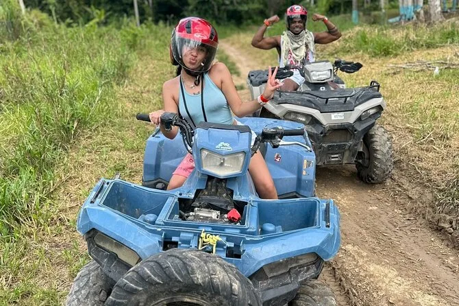 Seu dia inclui pickup privado no hotel em veículo com ar-condicionado, todas as taxas e entradas pagas antecipadamente, além do seu próprio ATV com capacete e óculos antes de explorar as trilhas enlameadas da Jamaica com seu guia local.