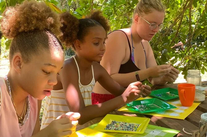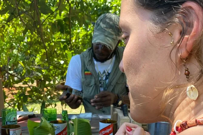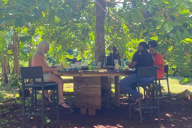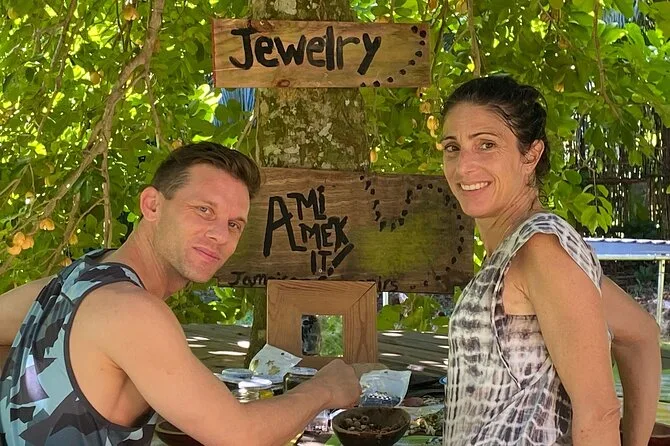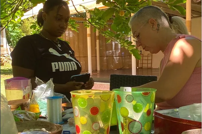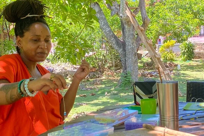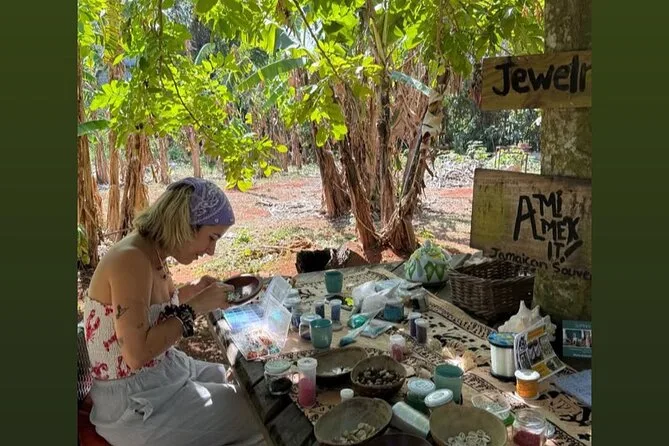 Seu dia inclui todos os materiais para criar seu souvenir jamaicano (como joias ou velas), água mineral para se refrescar sob as árvores, muitos snacks locais, sopa caseira e frutas frescas direto do jardim — além de tempo para passear entre os animais amigáveis antes de voltar para a cidade.