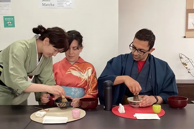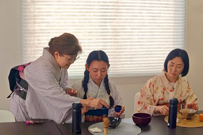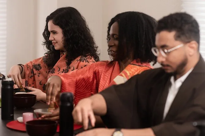 O dia inclui a opção de vestir kimono com ajuda da equipe, duas tigelas de matcha japonês premium (uma feita por um mestre do chá e outra preparada por você), wagashi sazonais que refletem os sabores locais, todos os utensílios autênticos para participar ativamente, assentos confortáveis em mesa para todas as idades, além de orientação clara em inglês ou japonês, antes de você seguir explorando Asakusa por conta própria.