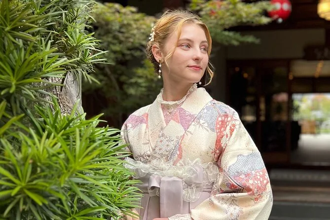 Seu dia inclui ajuda profissional para escolher kimono ou yukata (com todos os acessórios como cinto obi, bolsa clutch, sandálias e meias), serviço completo para vestir feito por uma equipe paciente, e até um penteado simples se quiser — tudo pronto em menos de uma hora para você sair explorando.