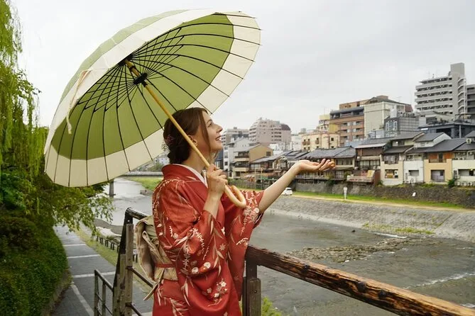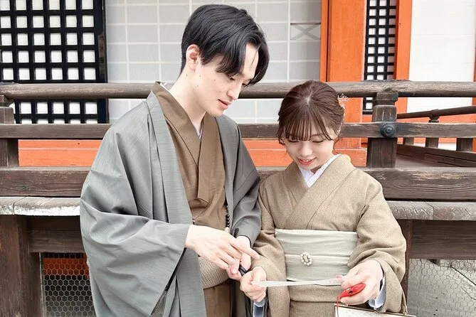 Você vai vestir um kimono ou yukata para passear pelas ruas atemporais de Kyoto — a equipe ajuda na escolha e no vestir, e aí é só aproveitar para explorar, tirar fotos ou sentir o clima da cidade. Devolva o traje à noite ou estenda a experiência por mais um dia para curtir ainda mais.