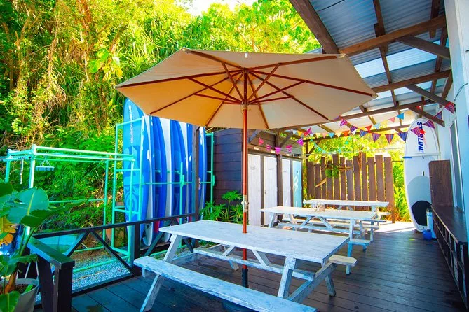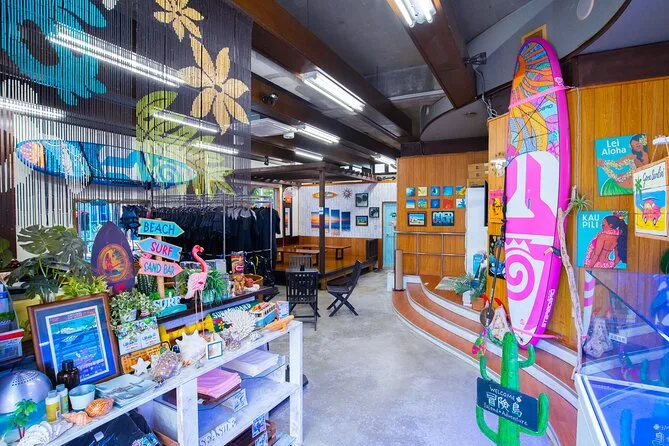 Quase perdi o ponto de encontro porque fiquei hipnotizado por um gato dormindo em uma scooter na frente da loja. A equipe só sorriu e acenou, sem pressa nem estresse. Nosso guia, Yuya, distribuiu os wetsuits e brincou sobre como eu ia parecer desajeitado vestindo o meu (ele tinha razão). O lugar tinha um cheiro leve de sal e protetor solar, e dava para ouvir risadas vindo do vestiário. O clima era tranquilo, nada daquelas excursões onde você é levado de um lado para o outro correndo.