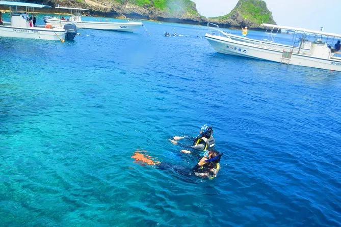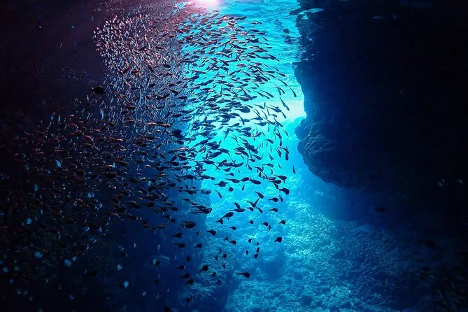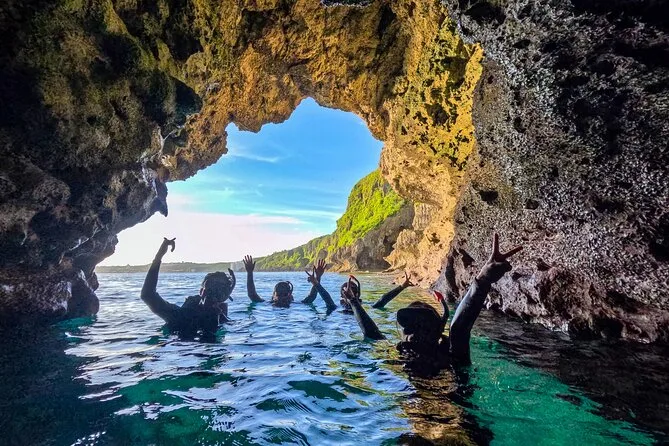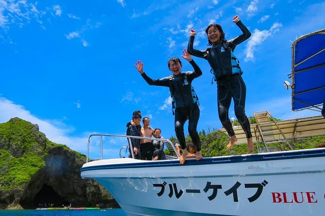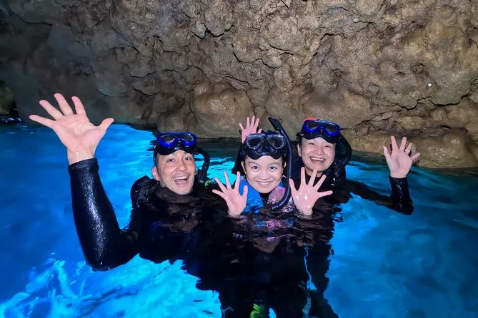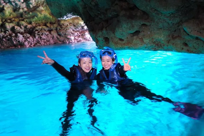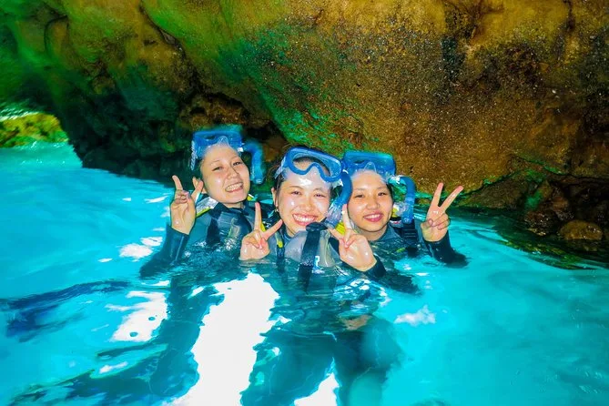 Explore a famosa Blue Cave de Okinawa com um guia particular que garante segurança e tranquilidade — perfeito para quem está começando no snorkel. Alimente peixes tropicais, receba fotos grátis direto no celular e aproveite o banho quente depois do mergulho. Aquela luz azul surreal fica na memória muito tempo depois.