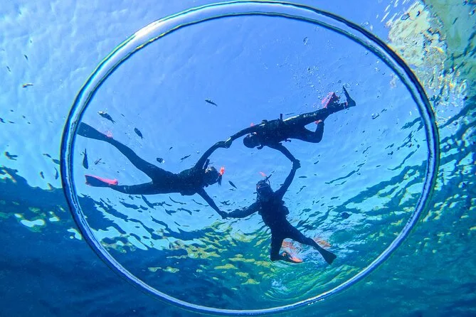 Na água, ele ficou sempre por perto com uma boia laranja gigante, então mesmo quando minha máscara embaçou (deveria ter escutado quando falou para não respirar pelo nariz), não fiquei nervoso. Peixes apareceram em volta quando ele abriu um saquinho de comida — juro que um até mordeu meu dedo. Ele tirou várias fotos enquanto flutuávamos; depois, mandou tudo direto pro meu celular ainda na loja, enquanto a gente se secava. O banho quente depois do wetsuit foi um alívio — meu cabelo até ficou com o cheirinho do shampoo deles.