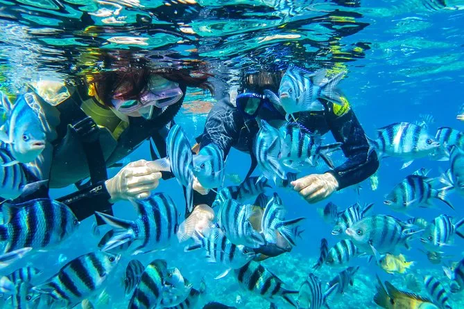 O dia inclui todo o equipamento para snorkel, aluguel de wetsuit e colete salva-vidas, seguro coberto pelo operador, serviço gratuito de fotos e vídeos (até 50 imagens enviadas direto para seu celular), passeio de barco compartilhado curto do porto até a entrada da caverna, com guia particular só para seu grupo — tudo começando a poucos passos de vestiários limpos com chuveiros quentes antes do passeio.