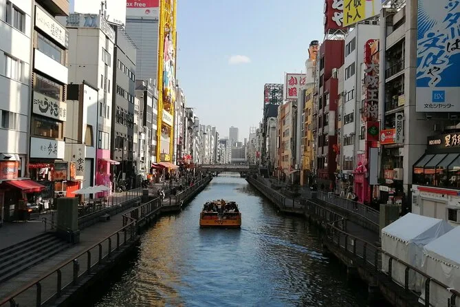 Seu dia inclui acompanhamento de um guia local que fala inglês e compartilha histórias em cada parada, almoço com ramen em um restaurante autêntico (sem armadilhas para turistas), ajuda para tirar fotos em pontos como o Castelo de Osaka e a placa do Glico em Dotonbori — tudo isso caminhando por mercados, templos e bairros iluminados por neon, terminando no centro de Osaka.