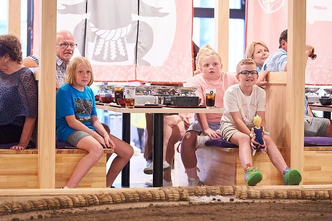 Seu dia inclui entrada no SUMOLAND Tokyo Ryogoku, participação em apresentações de sumô ao vivo com ex-campeões, batida de mochi com lutadores profissionais (crianças podem participar), almoço reforçado com chanko de frango feito pelos lutadores, oportunidade de fotos (com ajuda da equipe se precisar) e um kit de lembrancinhas original antes de voltar para explorar Tóquio.