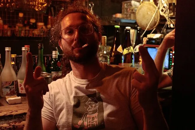 Confesso que reservei essa tour de fotos em Tóquio mais por curiosidade — já tinha visto fotos do Golden Gai em Shinjuku, mas caminhar por aquelas vielas estreitas com o Kai (nosso fotógrafo e guia) foi outra experiência. O ar estava carregado com o cheiro de yakitori na brasa e fumaça de cigarro saindo das portas abertas dos bares. Estava movimentado, mas sem ser sufocante, só aquele burburinho constante de risadas e tilintar de copos. O Kai nos mostrou como capturar aquele brilho nas fotos — sinceramente, eu nunca teria reparado como a luz das lanternas reflete no chão molhado da chuva se ele não tivesse apontado.