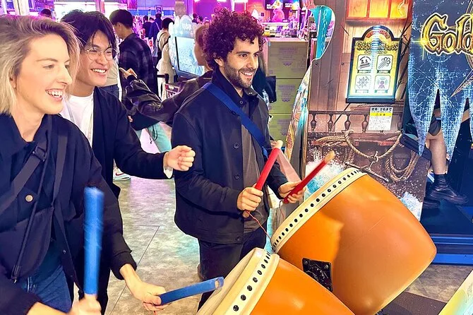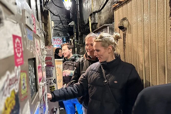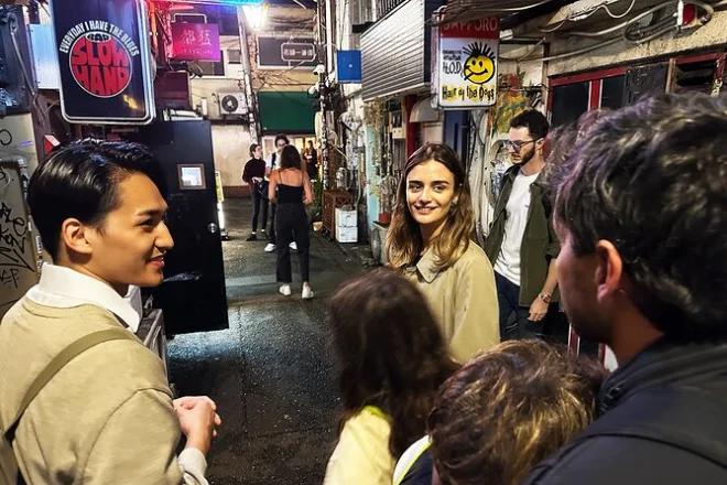 Seu passeio inclui encontro com o guia local perto da Estação Shinjuku, caminhada por Omoide Yokocho e Golden Gai com histórias exclusivas, uma pausa tranquila no Santuário Hanazono, além de uma bebida especial escolhida na máquina automática antes de seguir para a noite de Tóquio.