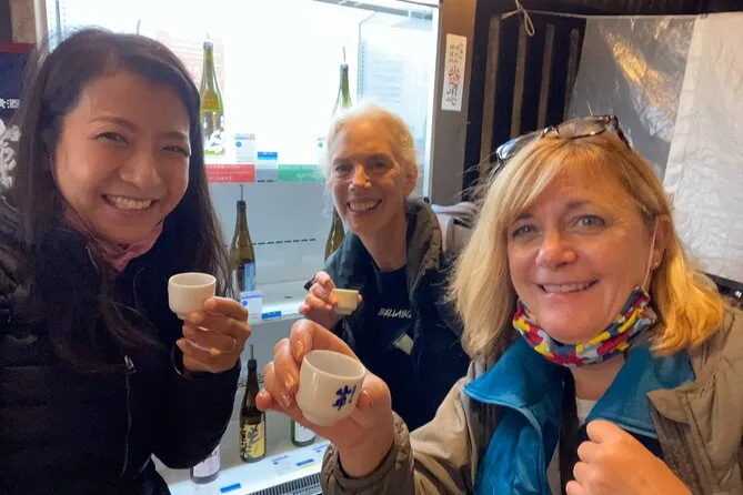 Degustações de sake estão disponíveis mediante taxa extra em pontos selecionados durante o passeio.