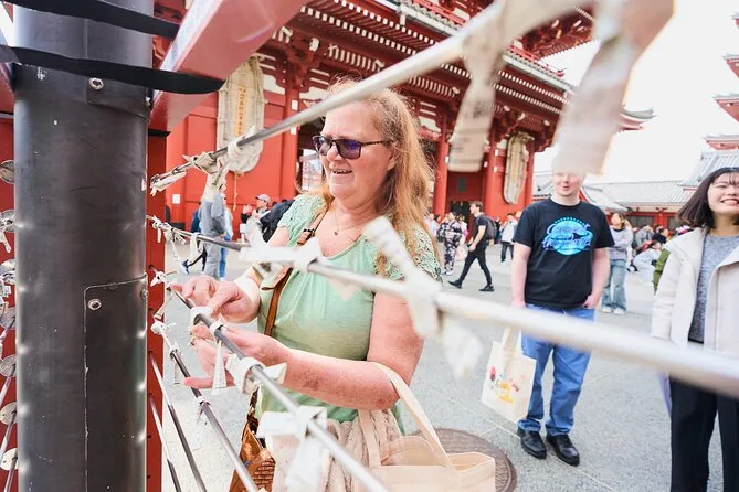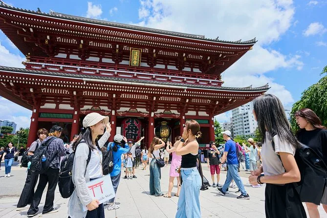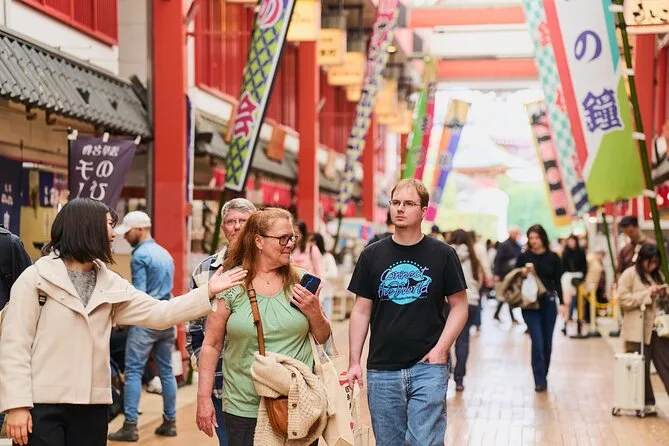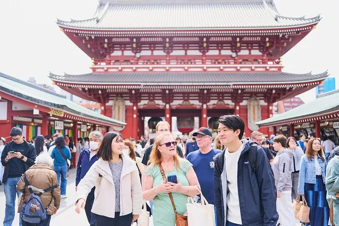 Seu dia inclui um guia local que fala inglês, levando você pelos templos e ruas comerciais de Asakusa — provando comidas de rua pela Nakamise-dori, visitando lojas tradicionais de facas se quiser, explorando fachadas no estilo Edo e terminando em um supermercado do bairro para souvenirs únicos — tudo acessível para cadeiras de rodas e carrinhos de bebê.
