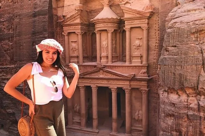 Seu dia inclui transfer privativo ida e volta em veículo com ar-condicionado e motorista que fala inglês, saindo de qualquer hotel ou residência em Amman, entrada no Parque Arqueológico de Petra com caminhada guiada de duas horas com um especialista local do portão principal até o Qasr Al Bint, tempo livre para explorar Petra por conta própria, água mineral durante todo o passeio, Wi-Fi no transporte e chá ou café perto do Tesouro antes do retorno no fim da tarde.