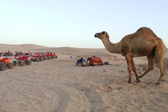 Seu dia inclui transfer de ida e volta do hotel em Agadir, todo o equipamento de segurança como capacete e óculos (e touca para cabelo, se quiser), um guia local simpático que vai te levar pelas trilhas do deserto e vilas berberes, paradas para fotos na costa ou dunas, além de chá de hortelã marroquino com petiscos tradicionais antes de voltar juntos para a cidade.