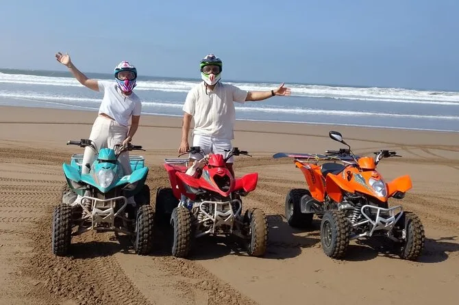 Viva a energia da paisagem de Agadir pilotando quad por trilhas no deserto e praias selvagens. Pare nas vilas berberes para receber acenos das crianças locais, depois compartilhe chá de hortelã e petiscos com o grupo enquanto a areia gruda nas botas. Com transfer incluso e um guia que conhece cada curva do caminho, essa é uma aventura cheia de calor humano.