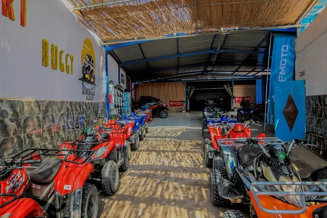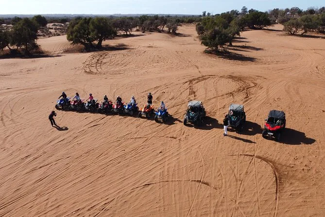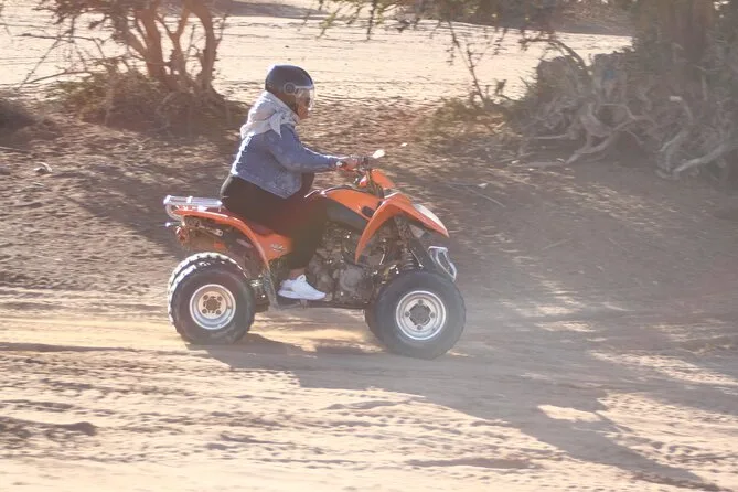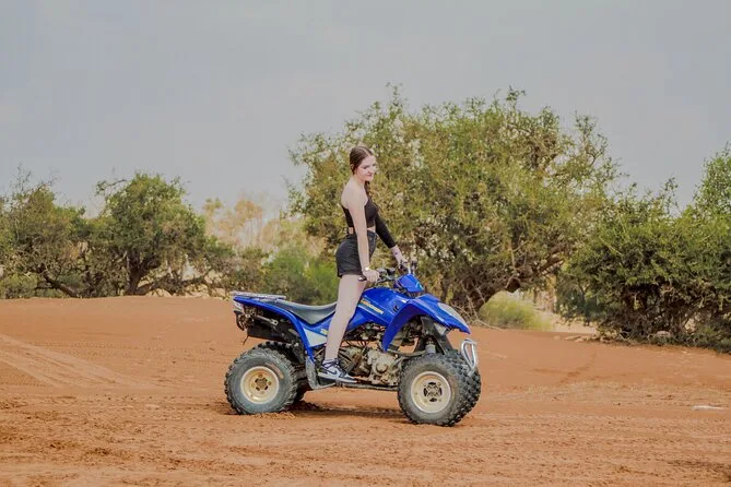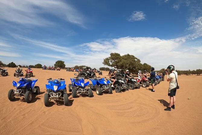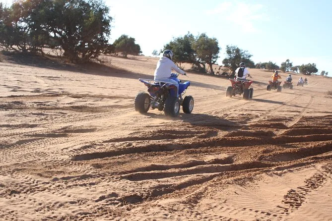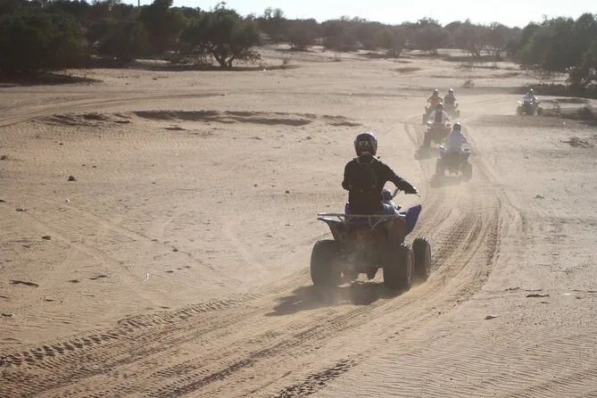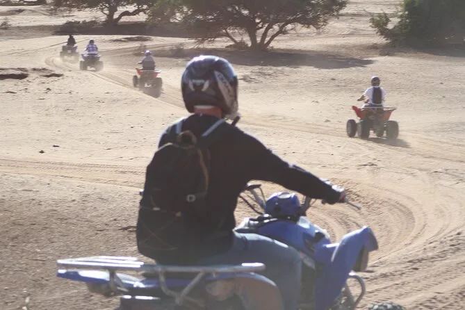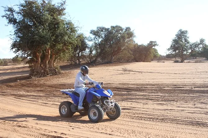 Seu dia inclui transfer de ida e volta do hotel nas áreas de Agadir ou Taghazout, 90 minutos de passeio guiado de quadriciclo pelas trilhas do deserto com guia local experiente, equipamento de segurança completo fornecido na orientação, além de uma pausa para chá de hortelã marroquino e petiscos antes do retorno ao hotel.