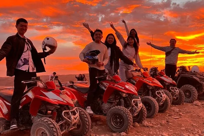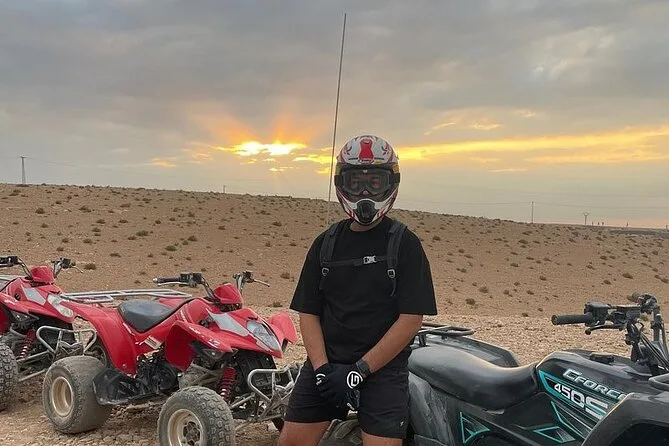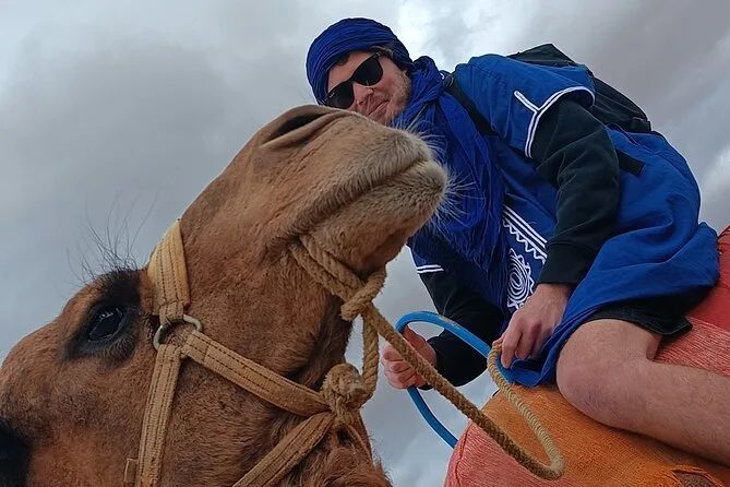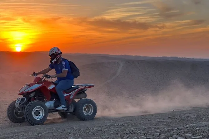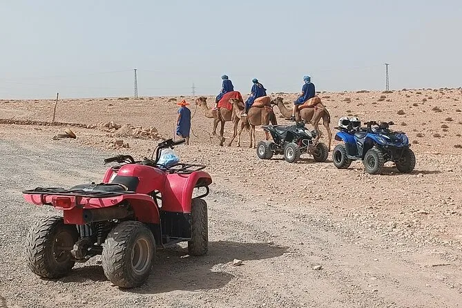 Seu dia inclui transporte de ida e volta do hotel em Marrakesh em veículo com ar-condicionado; roupa nômade para o passeio de camelo; uma hora de quadriciclo e uma hora de camelo pelo deserto de Agafay; chá marroquino, água e refrigerante; e um jantar tradicional com salada e tajine de frutas sob uma tenda berbere antes do retorno à noite.