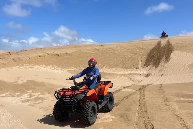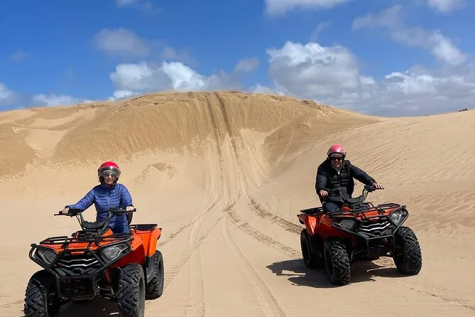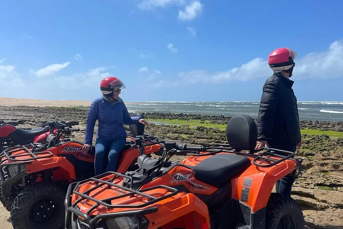 O seu dia inclui transfer de ida e volta do seu hotel ou riad em Essaouira, todo o equipamento de segurança como capacetes, um quad para cada participante, acompanhamento de um guia local que adapta o percurso para todos os níveis — até para quem nunca pilotou — e várias paradas para fotos antes do retorno de carro.