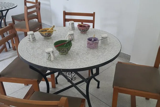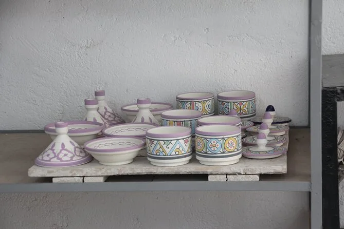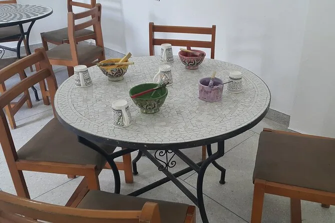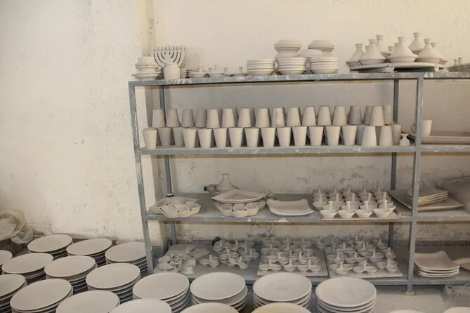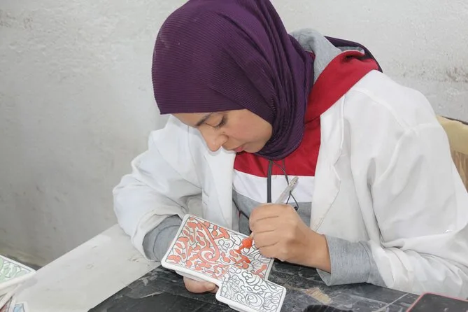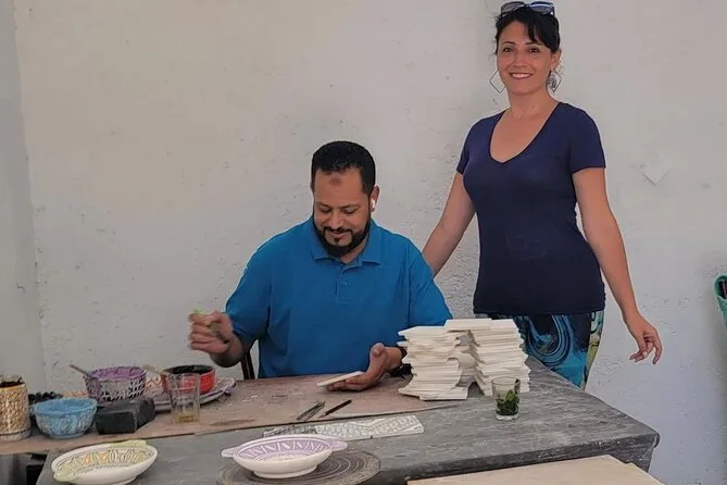 O dia inclui transfer gratuito em veículo com ar-condicionado até a oficina em Fes, água mineral, pausas para café ou chá enquanto você trabalha lado a lado com artesãos locais que orientam cada etapa da cerâmica tradicional e da arte do mosaico zellige — e no final, você leva para casa suas próprias lembranças feitas à mão.