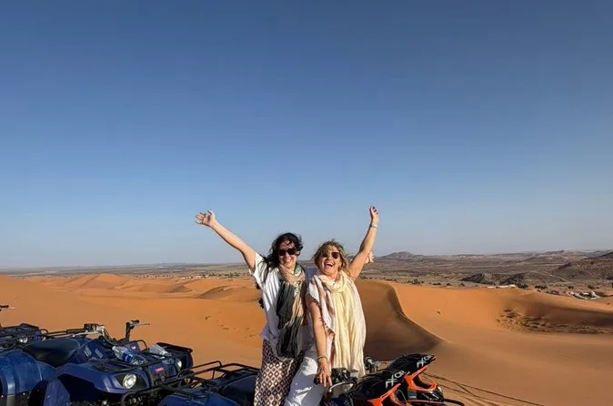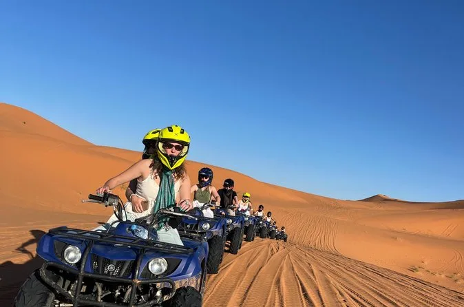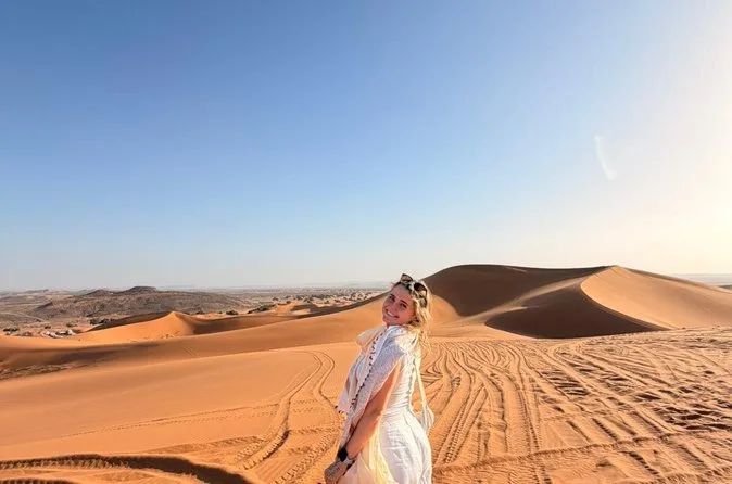 Seu passeio inclui transfer de ida e volta do hotel em Marrakech, transporte confortável em veículo com ar-condicionado por montanhas e vales, uma noite em hotel/riad no Vale do Dades ou Tinghir com quarto privativo, passeio de camelo ao pôr do sol pelas dunas de Erg Chebbi com opção de sandboard, uma noite em acampamento berbere no deserto (padrão ou luxo), além de todas as refeições principais até o retorno a Marrakech no terceiro dia.