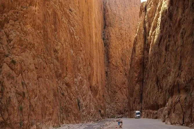 A viagem leva cerca de 9 a 10 horas em cada trecho, com paradas em lugares cênicos como Ait Ben Haddou e o desfiladeiro de Todra.