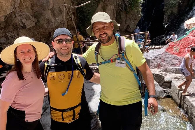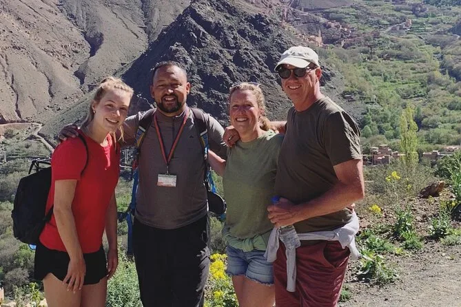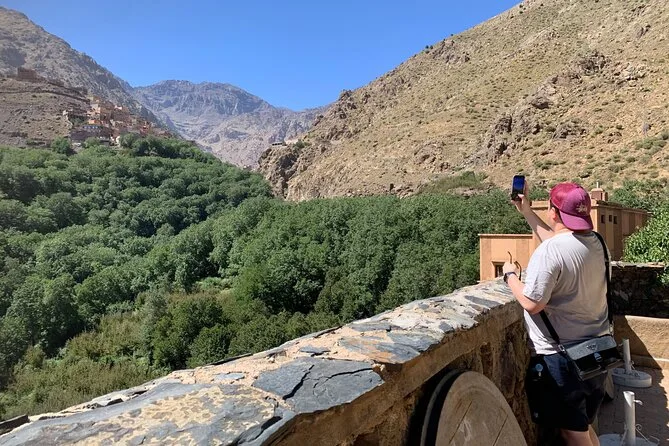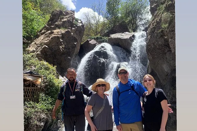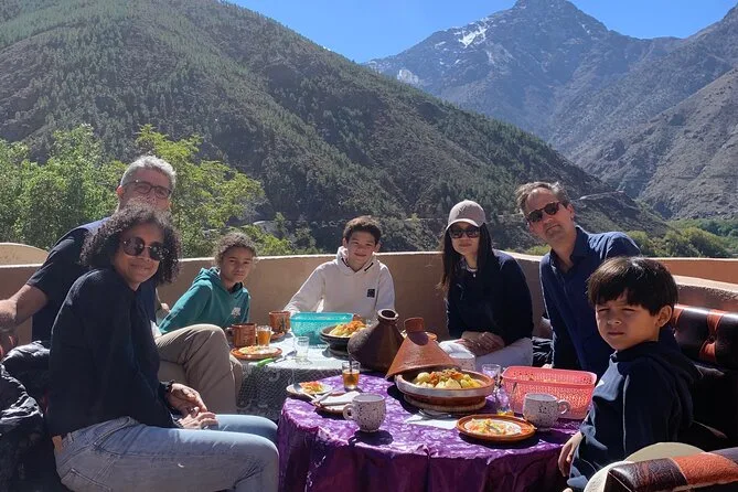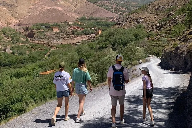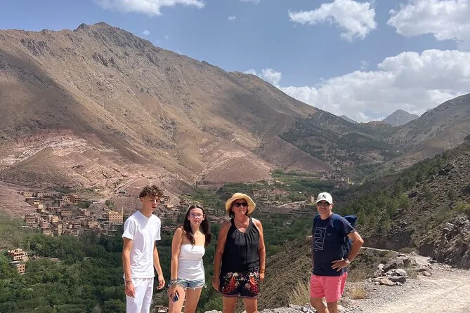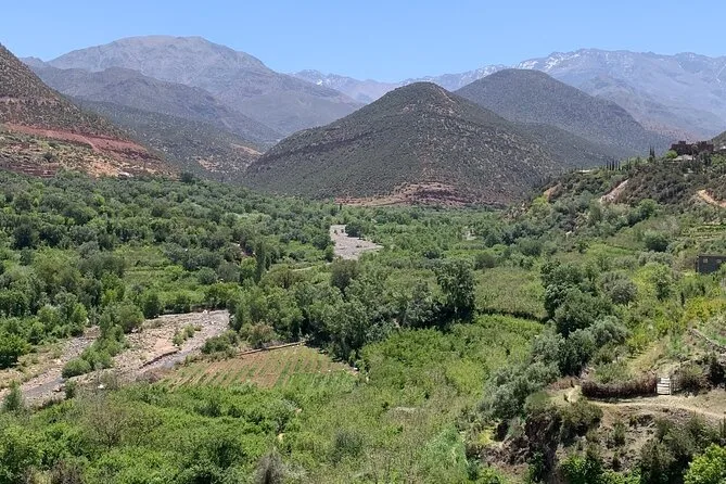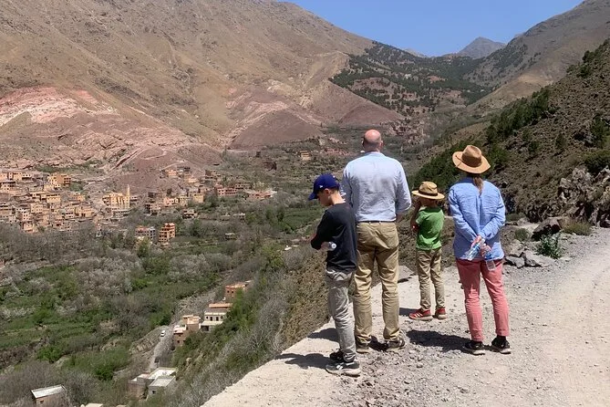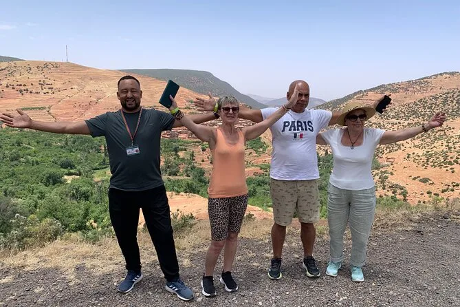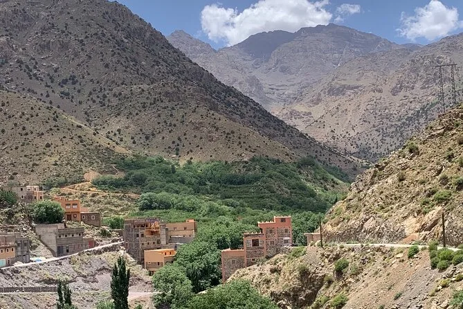 Seu dia inclui transporte do hotel ou riad em Marrakech com Hassan e Salah (guia e motorista), água mineral durante o trajeto, paradas na vila de Azrou e na cooperativa feminina de óleo de argan com degustações, caminhada guiada pelo vale de Imlil passando por cachoeiras e vilarejos berberes (com transporte opcional), pausas para café ou chá e almoço completo berbere na casa da família do guia, antes de voltar a Marrakech em veículo com ar-condicionado.