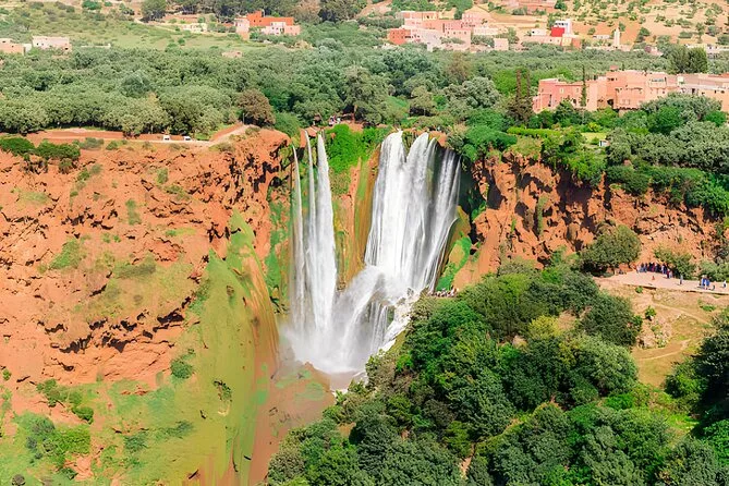 O passeio inclui traslado de ida e volta do hotel em Marrakech, transporte com ar-condicionado e motorista profissional, caminhada guiada pelas Cascatas de Ouzoud entre olivais, tempo para fotos em pontos panorâmicos, almoço com vista para as quedas e parada para café no retorno.